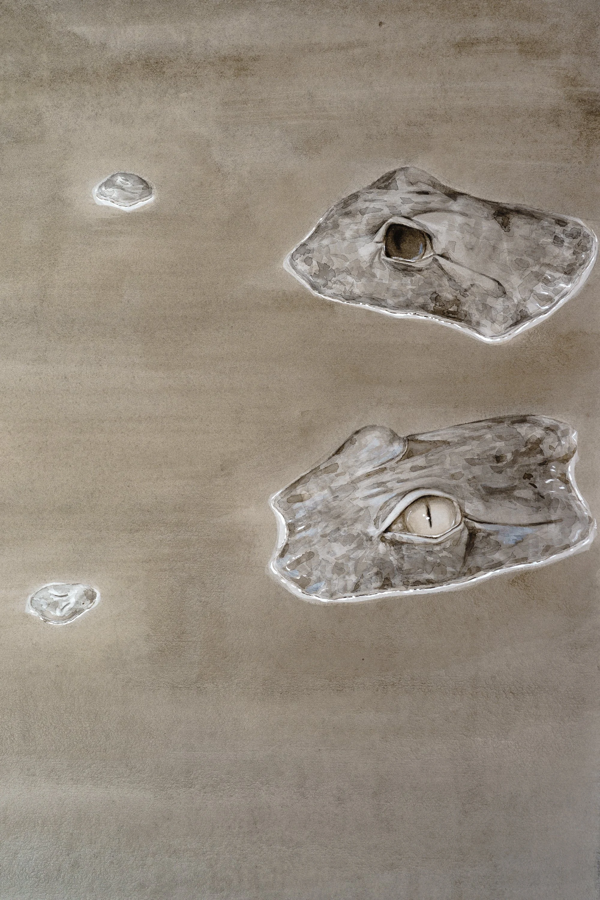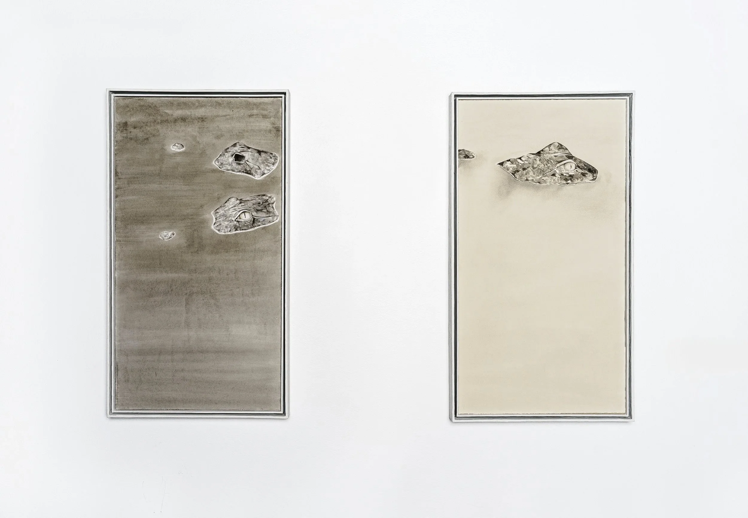These works derive from sketches made in a cognitive zoology lab that was studying the cognitive capacities of alligators. Observing how these tests done in sterile environments will never understand the extent of what an alligator knows, I made these works to embody the etymology of cognition, which means “to know together.”