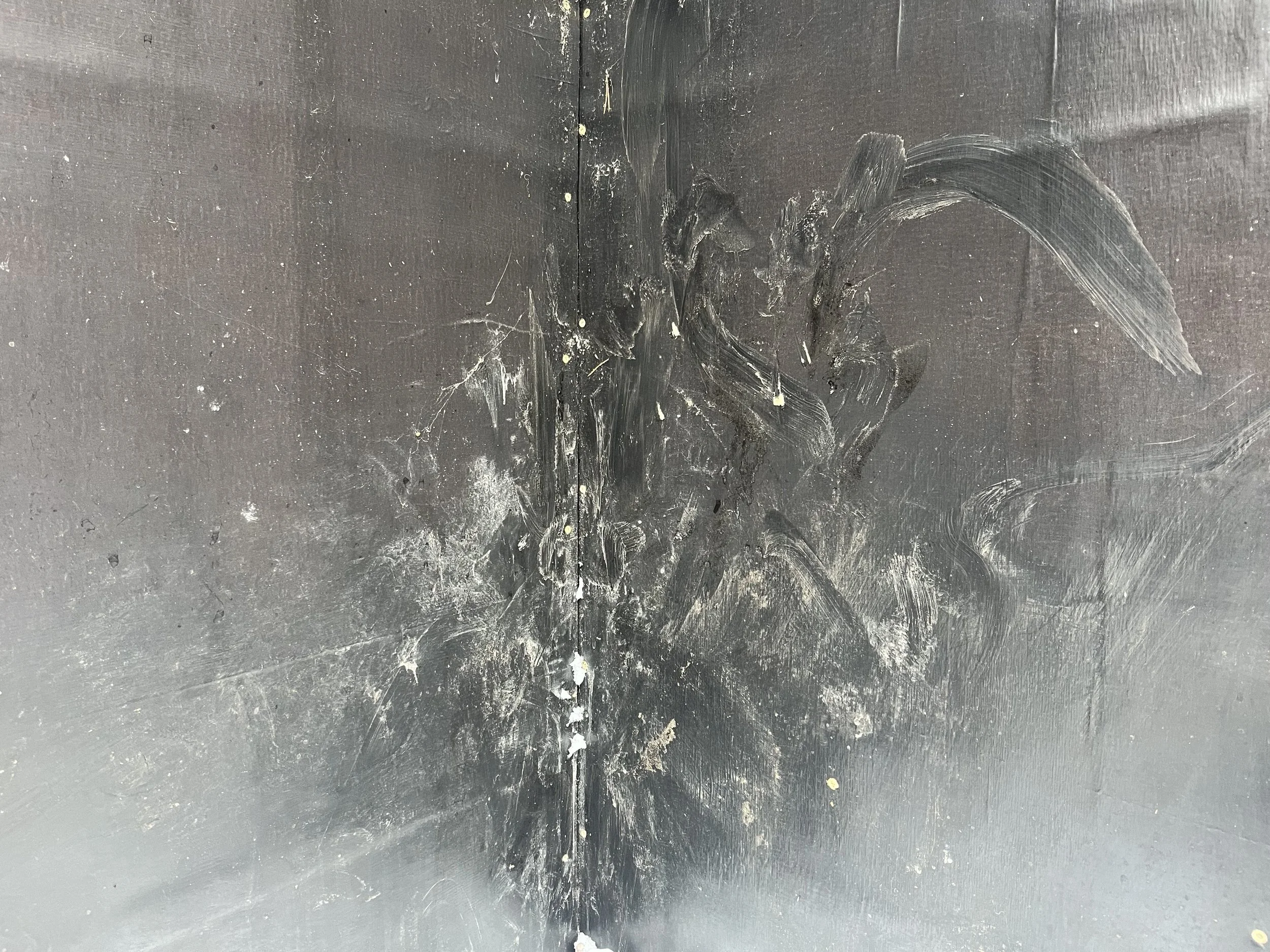 Cold wax, graphite oil stick on wood panel